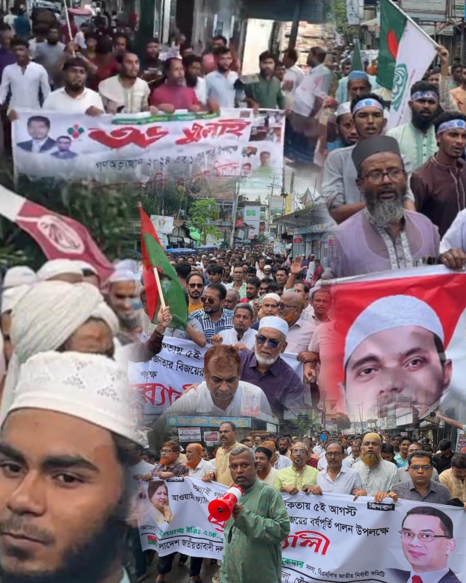 আ:লীগ সরকার পতনের একবছর পূর্তি উপলক্ষ্যে বাউফলে সকল রাজনৈতিক সংগঠনের গণ মিছিল