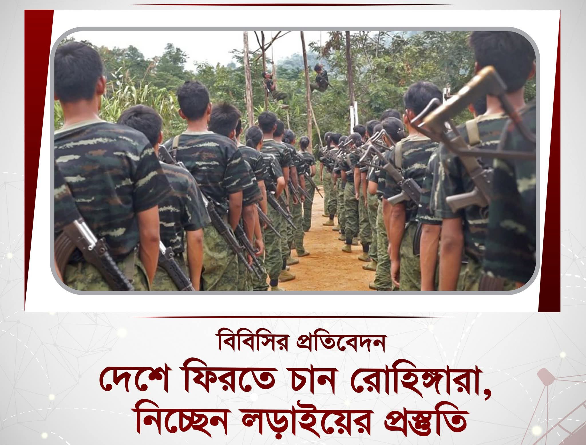 ‘তারা নিয়মিত অ্যাওয়ারনেস সেশন করে যে তাদের আদি নিবাস আরাকান রাজ্য, তাদের সেখানে ফিরে যেতে হবে। তাদের সেখানে ফিরে যাওয়ার জন্য যদি যুদ্ধের প্রয়োজন হয়, সে যুদ্ধের জন্য প্রস্তুত হওয়ার জন্য এই যে প্রতিনিয়ত রোহিঙ্গা সশস্ত্র গোষ্ঠীগুলো রয়েছে, তাদের নেতৃত্বে অ্যাওয়ারেনস সেশন তারা করে থাকে এবং ক্যাম্পের বাহিরে বা ভেতরে তাদের ছোট ছোট গ্রুপে প্রশিক্ষণের ইনফরমেশন আমরা পেয়েছি এবং সামাজিক যোগাযোগমাধ্যমে আমরা সেটা দেখেছি’, বলেন রবিউল হোছাইন।