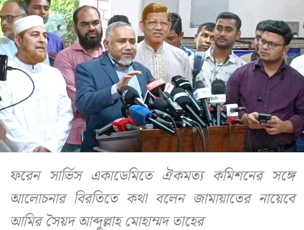 নির্বাচনের প্রস্তুতি আছে, কিন্তু নানা ষড়যন্ত্র দেখছি: তাহের ফরেন সার্ভিস একাডেমিতে ঐকমত্য কমিশনের সঙ্গে আলোচনার বিরতিতে কথা বলেন জামায়াতের নায়েবে আমির সৈয়দ আব্দুল্লাহ মোহাম্মদ তাহের