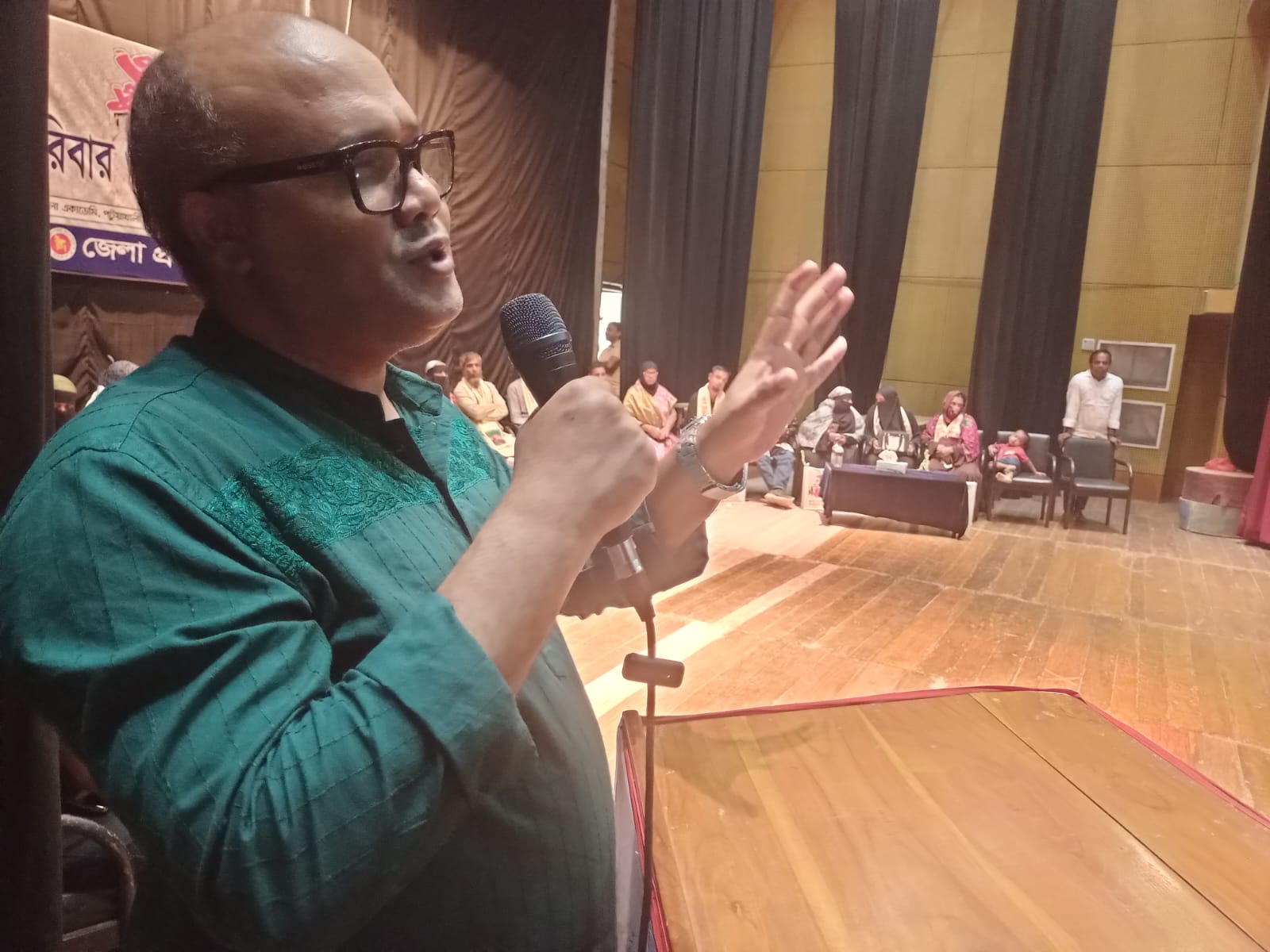 রশিদ কিশলয় বিদ্যানিকতনের সহকারি শিক্ষিকা সোনামনির সঞ্চালনায় "জুলাই শহিদ পরিবার ও জুলাই যোদ্ধাদের সম্মিলন" অনুষ্ঠানে স্বাগত বক্তব্য রাখেন অতিরিক্ত জেলা ম্যাজিস্ট্রেট মোঃ তারেক হাওলাদার। বক্তব্য রাখেন জেলা প্রশাসক আবু হাসনাত মোহাম্মদ আরেফীন, পুলিশ সুপার মোঃ আনোয়ার জাহিদ, জেলা জামায়াতের আমীর এ্যাডভোকেট নাজমুল আহসান, জেলা ইসলামী আন্দোলনের সভাপতি হাওলাদার মো. সেলিম মিয়া, জেলা গণঅধিকার পরিষদের সদস্য সচিব শাহ আলম শিকদার, এনসিপি'র ১ নং যুগ্ম সমন্বয়ক বশির আহমেদ, সাংবাদিক জাকির হোসেন, সাংবাদিক আব্দুস সালাম আরিফ, বৈষম্য বিরোধী ছাত্র আন্দোলনের নেতা তোফাজ্জেল হোসেন। শহিদ পরিবারের মধ্যে বক্তব্য রাখেন শহিদ সাংবাদিক মেহেদী হাসানের বাবা মোশারেফ হোসেন, শহিদ জিহাদ হোসেনের ভাই মোঃ জিন্নাত হোসেন, শহিদ আমিনুল ইসলামের মা সেলিনা বেগম, আহত রায়হানের বাবা শামীম উর রহমান, আহত তানিমের বাবা আব্দুস সত্তার, আহত মোঃ ইমরান আহমেদ, আহত মোঃ মুজাহিদুল ইসলাম।
